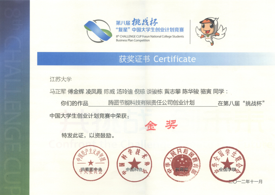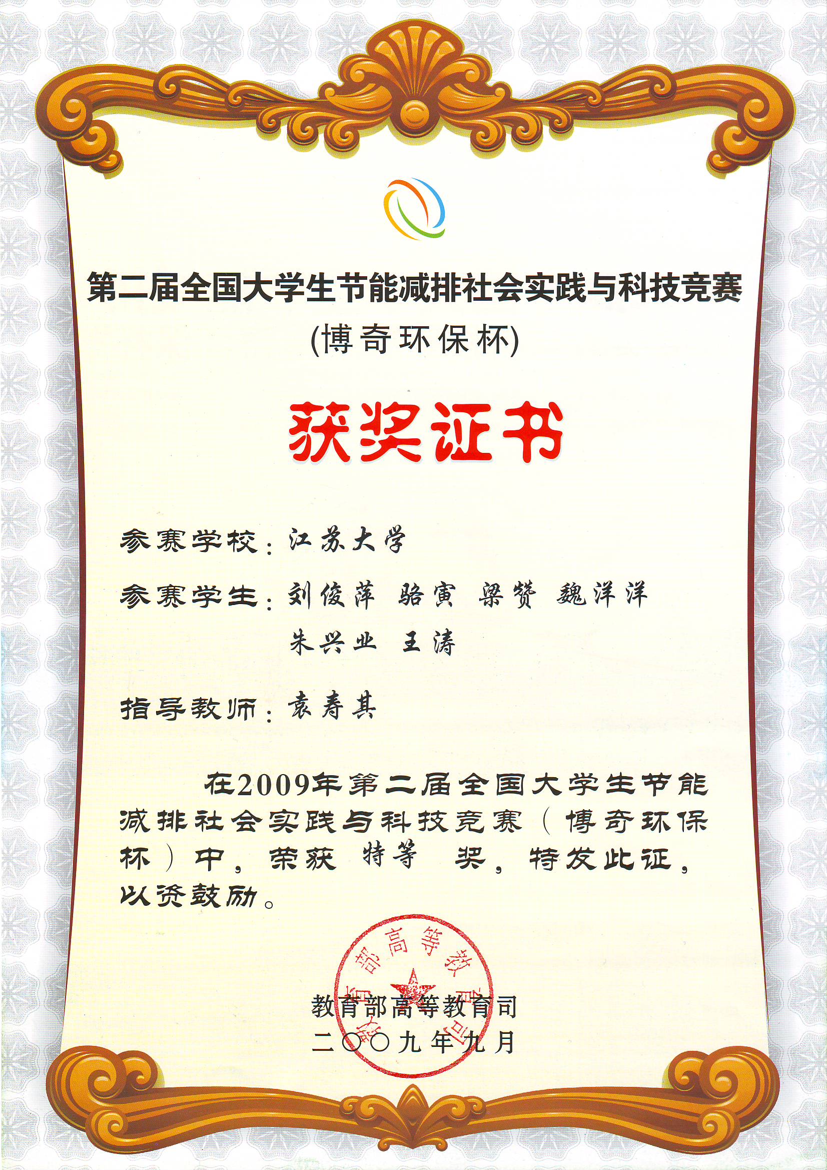 第二節全國大學(xué)生節能減排社會(huì )實(shí)踐與科技作品競賽特等獎